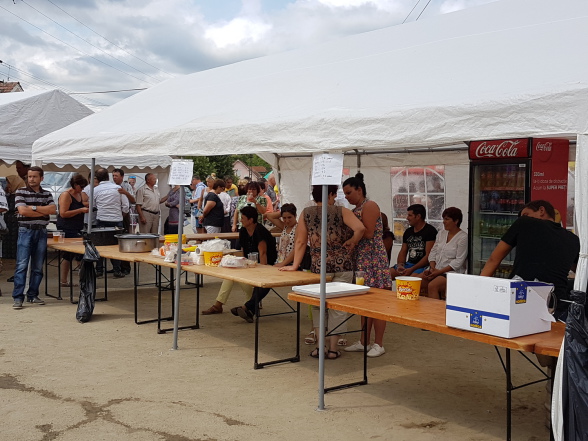 Gemeindefest vor dem Kultursaal zusammen mit der einheimischen Bevölkerung